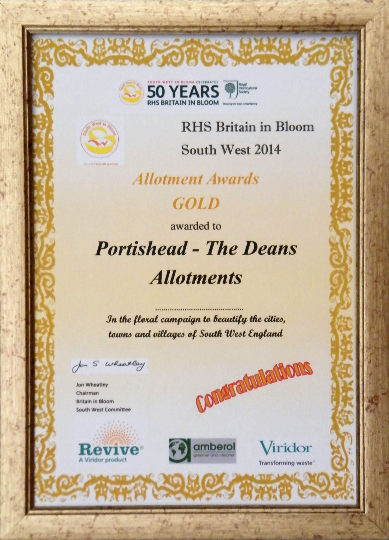 South West in Bloom 2014 results: Portishead in Bloom has won Gold Champion of Champions. Ken Windibank was one of four people in the whole of the south-