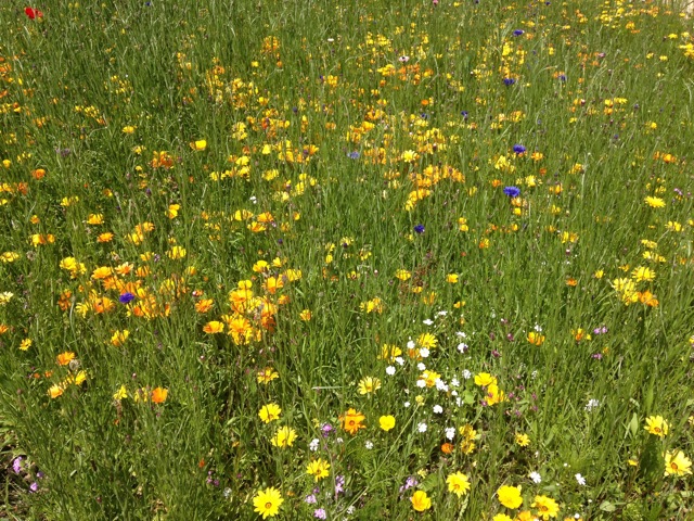 Our new golden wild flower meadow at the Town Garden, near the new Library is doing well. Please